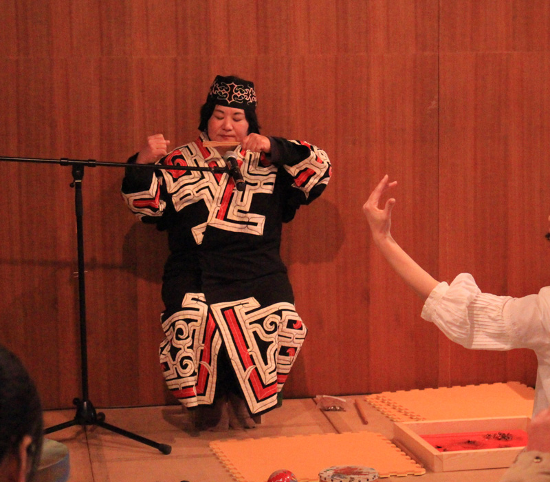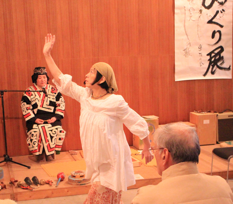 アイヌのイベントでは、山田さんの語りとムックリ、歌などを披露していただきました。