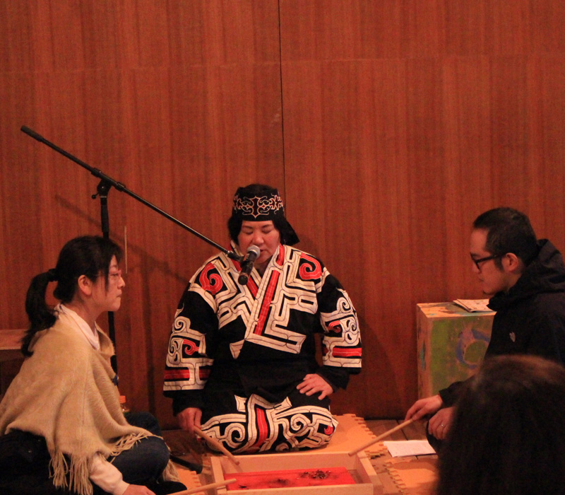 この年のイベントでは、北海道の白老のアイヌ民族博物館でも働かれておられる、アイヌの担い手山田美郷さんをお迎えして、アイヌの歌とユカラからアイヌ文化を味わいました。